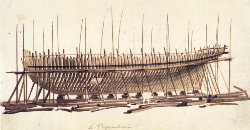Keywords: Duguaitrouin-Antoine Roux-p24.jpg The privateer Duguay-Trouin under construction in 1790 Jean Meissonnier Voiliers de l'Époque romantique Edita Lausanne 1991 ISBN 2-88001-273-2 p 24 Creator Antoine Roux PD-art-100 Antoine Roux