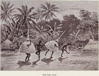 Keywords: Duk-duk dance.JPG Tolai-Volk Gazelle-Halbinsel von Neubritannien Papua-Neuguinea <br /> Duk-Duk-Tänzer; der Duk-Duk ist ein geheimer Männerbund den es auch auf der benachbarten Insel Neuirland gibt 19 Jahrhundert; Aquarell von Joachim Graf Pfeil publiziert 1899 Tolai people Gazelle Peninsula of New Britain Papua New Guinea <br /> Duk-Duk dancers; the Duk-Duk is a secret society of men also present on neighbouring New Ireland Island 19th century; water color by Joachim Graf Pfeil published 1899 Eigenes Scan own scan Lysippos 1899 published source Joachim Graf Pfeil Studien und Beobachtungen aus der Südsee Braunschweig Friedrich Vieweg und Sohn 1899 in front of page 161 PD-old Tolai AAdukduk Dance of Papua New Guinea Mythology of Papua New Guinea People of Papua New Guinea Postcards of Papua New Guinea Joachim von Pfeil und Klein Ellguth Postcards of dancers