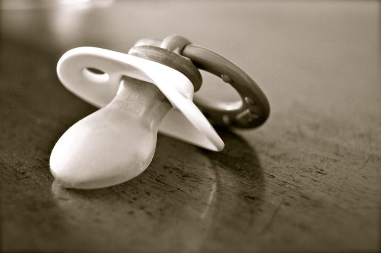 Keywords: dummy pacifier baby silicone plastic old at that time sucking born child forget lost black white
