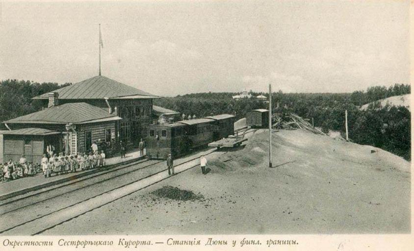Keywords: Dune raiway stansion.jpg Железнодо ожная станция Дюны на до еволюционной отк ытке http //www parovoz com/gallery/RU78/20061230_59960 jpg parovoz com s 1900 Unknown publisher PD-Old Dune railway station
