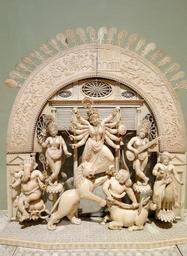 Keywords: Durga Mahishasuramardini by Toolsee Ram, view 2, India, Bengal, 1836, ivory and mirror - Berkeley Art Museum and Pacific Film Archive - DSC04160.JPG en Exhibit in the Berkeley Art Museum and Pacific Film Archive 2625 Durant Avenue 2250 Berkeley California USA This museum is part of the University of California Berkeley This artwork is in the public domain because the artist died more than 70 years ago Photography of this exhibit was permitted without restriction 2013-11-14 17 00 01 own Daderot other versions cc-zero Sculptures from India in the Berkeley Art Museum and Pacific Film Archive Uploaded with UploadWizard Durga in sculpture Indian ivory |