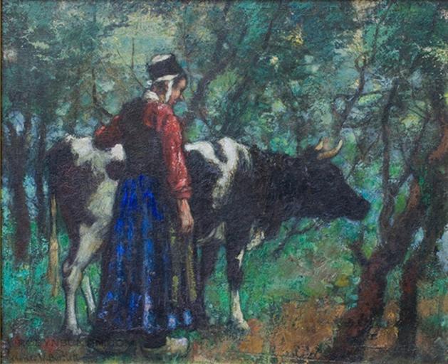 | Keywords: Dutch Girl Driving a Bull by Charles Bartlett oil on canvas, 1908.jpg en Dutch Girl Driving a Bull Robyn Buntin of Honolulu creator Charles W Bartlett 1908 oil canvas cm 25 30 object history exhibition history credit line accession number PD-old-auto-1923 1940 Oil paintings by Charles W Bartlett 1908 paintings Paintings of women with cattle | ||||