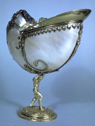 | Keywords: Dutch - Nautilus Cup - Walters 57989 - Profile.jpg Shells of the pearly chambered nautilus were imported from the Indian and Pacific Oceans as natural marvels because of the lustrous beauty of the shell when polished and its amazing interior structure A luxurious drinking vessel for court feasts this cup underscores the host's magnificence and power over nature Goldsmiths designing the mounts for these shells gave free rein to their imaginations fashioning figures such as Atlas a legendary titan of Greco-Roman mythology who was said to balance the heavens on his back The artist playfully calls attention to the artful contradictions of the piece Although the shell is very light Atlas' muscles are flexed in strain ca 1630 baroque nautilus shell gilded on silver mounts cm 22 1 accession number 57 989 16751 date Caspar Bourgeois and Stephen Bourgeois Cologne purchase Sale Cologne October 19 1904 no 554 date purchase Raoul Heilbronner Paris ProvenanceEvent 1908 purchase Henry Walters Baltimore Walters Art Museum Henry Walters Acquired by Henry Walters 1908 World of Wonder The Walters Art Gallery Baltimore 1971-1972 place of origin Netherlands Walters Art Museum license Baroque art in the Walters Art Museum Art of the Netherlands Nautilus cups Media contributed by the Walters Art Museum needs category review |