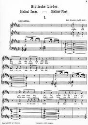 Keywords: Dvorak's Biblicke Pisne i-3.jpg Dvorak's_Biblicke_Pisne_i- jpg 2 4 Antonín Dvořák's Biblícké Písně Biblical Songs Op 99 1884 Book 1 containing Songs 1-5 While Dvorak later orchestrated the work this the complete original piano-and-voice version While the massacre of the original music to fit the German and English is appalling it does contain the original Czech and the original music for the Czech The German and English should probably be considered only as a translation This is the first five songs out of ten the other five are printed in a second volume I have not yet tracked down I haven't been able to find Book 2 unfortunately 1895 copy in my own possession The only copyright claimed on the sheet music itself is to N Simrock which is a publishing house Antonin Dvorak PD-Old Original Czech From http //music ibiblio org/pub/multimedia/pandora/vorbis/contrib/Marta_Chaloupka_Live/Czech notes accompanying the Pandora Music recording 1 Psalm 97 2-6 Oblak a mrákota jest vůkol Něho spravedlnost a soud základ trůnu Jeho Oheň předchází jej a zapaluje vůkol nepřátele Jeho Zasvěcujíť se po okršlku světa blýskání Jeho; to vidouc země děsí se Hory jako vosk rozplývají se před obličejem Hospodina panovníka vší země a slávu jeho spatřují všichni národové 2 Psalms 119 114-117 119 120 Skrýše má a pavéza má Ty jsi na slovo Tvé očekávám Odstuptež ode mne nešlechetníci abych ostříhal přikázaní Boha svého Posiluj mne bych zachován byl a patřil k ustanovením Tvým ustavičně Děsí se strachem před Tebou tělo mé; nebo soudů Tvých bojím se náramně 3 Psams 55 1 2 4/5 6 7 8 Slyš ó Bože Slyš modlitbu mou a neskrývej se před prosbou mou Pozoruj a vyslyš mne neboť naříkám v úpění svém a kormoutím se Srdce mé tesklí ve mně a strachové smrti přišli na mne a hrůza přikvačila mne I řekl jsem Ó bych měl křídla jako holubice zaletěl bych a poodpočinul Aj daleko bych se vzdálil a přebýval bych na poušti Pospíšil bych ujíti větru prudkému a vichřici 4 Psalms 23 1-4 Hospodin jest můj pastýř nebudu míti nedostatku Na pastvách zelených pase mne k vodám tichým mne přivodí Duši mou občerstvuje vodí mne po stezkách spravedlnosti pro jméno své Byť mi se dostalo jíti přes údolí stínu smrti nebuduť se báti zlého nebo Ty se mnou jsi; a prut Tvůj a hůl Tvá toť mne potěšuje 5 Psalms 144 9 145 1-3 5 6 Bože Bože píseň novou zpívati budu Tobě na loutně a žalmy tobě prozpěvovati Na každý den dobrořečiti budu Tobě a chváliti jméno Tvé na věky věků Hospodin jistě veliký jest a vší chvály hodný a velikost jeho nemůž vystižena býti O slávě a kráse a velebnosti Tvé i o věcech Tvých předivných mluviti budu A moc přehrozných skutků Tvých vsichni rozhlašovati budou; i já důstojnost Tvou budu vypravovati 6 Psalms 61 1 3 4 63 1 4/5 Slyš ó Bože volání mé pozoruj modlitby mé Nebo jsi býval útočiště mé a pevná věže před tváří nepřítele Buduť bydliti v stánku tvém na věky schráním se v skrýši křídel tvých Bože Bůh silný můj ty jsi tebeť hned v jitře hledám Tebe žízní duše má po tobě touží tělo mé v zemi žíznivé a vyprahlé v níž není vody A tak abych tobě dobrořečil a s radostným rtů prozpěvováním chválila by tě ústa má 7 Psalms 137 1-5 Při řekách Babylonských tam jsme sedávali a plakávali rozpomínajíce se na Sion Na vrbí v té zemi zavěšovali jsme citary své když se tam dotazovali nás ti kteříž nás zajali na slova písničky říkajíce Zpívejte nám některou píseň Sionskou Odpovídali jsme Kterakž bychom mohli zpívati píseň Hospodinovu v zemi cizozemců Jestliže se zapomenu na tebe ó Jeruzaléme ó zapomeniž i pravice má umění svého 8 Psalms 25 16-18 20 Popatřiž na mne a smiluj se nade mnou neboť jsem opuštěný a strápený Soužení srdce mého rozmnožují se z úzkostí mých vyveď mne z úzkostí mých vyveď mne Smiluj se nade mnou Viz trápení mé a bídu mou a odpusť všecky hříchy mé Ostříhej duše mé a vytrhni mne ať nejsem zahanben neboť v tebe doufám neboť v tebe doufám 9 Psalms 121 1-4 Pozdvihuji očí svých k horám odkud by mi přišla pomoc Pomoc má jest od Hospodina kterýž učinil nebe i zemi Nedopustíť aby se pohnouti měla noha tvá nebo nedřímeť strážný tvůj Aj nedřímeť ovšem nespí ten kterýž ostříhá Izraele 10 Psalms 98 1 4/5 7 8 96 12/11 Zpívejte Hospodinu píseň novou neboť jest divné věci učinil Zvuk vydejte prozpěvujte a žalmy zpívejte Zvuč moře i to což v něm jest okršlek světa i ti což na něm bydlí Řeky rukama plésejte spolu s nimi i hory prozpěvujte Plésej pole a vše což na něm plésej země zvuč i moře i což v něm jest Biblické písně Psalm 97 Biblické písně Music in 1894 Christianity in the Czech Republic Czech language |