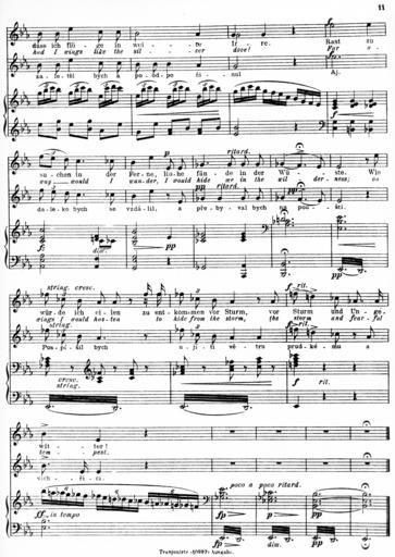 | Keywords: Dvorak's Biblicke Pisne i-11.jpg Dvorak's_Biblicke_Pisne_i- jpg 10 12 Antonín Dvořák's Biblícké Písně Biblical Songs Op 99 1884 Book 1 containing Songs 1-5 While Dvorak later orchestrated the work this the complete original piano-and-voice version While the massacre of the original music to fit the German and English is appalling it does contain the original Czech and the original music for the Czech The German and English should probably be considered only as a translation This is the first five songs out of ten the other five are printed in a second volume I have not yet tracked down I haven't been able to find Book 2 unfortunately 1895 copy in my own possession The only copyright claimed on the sheet music itself is to N Simrock which is a publishing house Antonín Dvořák 1841 1904 PD-Old Original Czech From http //music ibiblio org/pub/multimedia/pandora/vorbis/contrib/Marta_Chaloupka_Live/Czech notes accompanying the Pandora Music recording 1 Psalm 97 2-6 Oblak a mrákota jest vůkol Něho spravedlnost a soud základ trůnu Jeho Oheň předchází jej a zapaluje vůkol nepřátele Jeho Zasvěcujíť se po okršlku světa blýskání Jeho; to vidouc země děsí se Hory jako vosk rozplývají se před obličejem Hospodina panovníka vší země a slávu jeho spatřují všichni národové 2 Psalms 119 114-117 119 120 Skrýše má a pavéza má Ty jsi na slovo Tvé očekávám Odstuptež ode mne nešlechetníci abych ostříhal přikázaní Boha svého Posiluj mne bych zachován byl a patřil k ustanovením Tvým ustavičně Děsí se strachem před Tebou tělo mé; nebo soudů Tvých bojím se náramně 3 Psams 55 1 2 4/5 6 7 8 Slyš ó Bože Slyš modlitbu mou a neskrývej se před prosbou mou Pozoruj a vyslyš mne neboť naříkám v úpění svém a kormoutím se Srdce mé tesklí ve mně a strachové smrti přišli na mne a hrůza přikvačila mne I řekl jsem Ó bych měl křídla jako holubice zaletěl bych a poodpočinul Aj daleko bych se vzdálil a přebýval bych na poušti Pospíšil bych ujíti větru prudkému a vichřici 4 Psalms 23 1-4 Hospodin jest můj pastýř nebudu míti nedostatku Na pastvách zelených pase mne k vodám tichým mne přivodí Duši mou občerstvuje vodí mne po stezkách spravedlnosti pro jméno své Byť mi se dostalo jíti přes údolí stínu smrti nebuduť se báti zlého nebo Ty se mnou jsi; a prut Tvůj a hůl Tvá toť mne potěšuje 5 Psalms 144 9 145 1-3 5 6 Bože Bože píseň novou zpívati budu Tobě na loutně a žalmy tobě prozpěvovati Na každý den dobrořečiti budu Tobě a chváliti jméno Tvé na věky věků Hospodin jistě veliký jest a vší chvály hodný a velikost jeho nemůž vystižena býti O slávě a kráse a velebnosti Tvé i o věcech Tvých předivných mluviti budu A moc přehrozných skutků Tvých vsichni rozhlašovati budou; i já důstojnost Tvou budu vypravovati 6 Psalms 61 1 3 4 63 1 4/5 Slyš ó Bože volání mé pozoruj modlitby mé Nebo jsi býval útočiště mé a pevná věže před tváří nepřítele Buduť bydliti v stánku tvém na věky schráním se v skrýši křídel tvých Bože Bůh silný můj ty jsi tebeť hned v jitře hledám Tebe žízní duše má po tobě touží tělo mé v zemi žíznivé a vyprahlé v níž není vody A tak abych tobě dobrořečil a s radostným rtů prozpěvováním chválila by tě ústa má 7 Psalms 137 1-5 Při řekách Babylonských tam jsme sedávali a plakávali rozpomínajíce se na Sion Na vrbí v té zemi zavěšovali jsme citary své když se tam dotazovali nás ti kteříž nás zajali na slova písničky říkajíce Zpívejte nám některou píseň Sionskou Odpovídali jsme Kterakž bychom mohli zpívati píseň Hospodinovu v zemi cizozemců Jestliže se zapomenu na tebe ó Jeruzaléme ó zapomeniž i pravice má umění svého 8 Psalms 25 16-18 20 Popatřiž na mne a smiluj se nade mnou neboť jsem opuštěný a strápený Soužení srdce mého rozmnožují se z úzkostí mých vyveď mne z úzkostí mých vyveď mne Smiluj se nade mnou Viz trápení mé a bídu mou a odpusť všecky hříchy mé Ostříhej duše mé a vytrhni mne ať nejsem zahanben neboť v tebe doufám neboť v tebe doufám 9 Psalms 121 1-4 Pozdvihuji očí svých k horám odkud by mi přišla pomoc Pomoc má jest od Hospodina kterýž učinil nebe i zemi Nedopustíť aby se pohnouti měla noha tvá nebo nedřímeť strážný tvůj Aj nedřímeť ovšem nespí ten kterýž ostříhá Izraele 10 Psalms 98 1 4/5 7 8 96 12/11 Zpívejte Hospodinu píseň novou neboť jest divné věci učinil Zvuk vydejte prozpěvujte a žalmy zpívejte Zvuč moře i to což v něm jest okršlek světa i ti což na něm bydlí Řeky rukama plésejte spolu s nimi i hory prozpěvujte Plésej pole a vše což na něm plésej země zvuč i moře i což v něm jest Biblické písně Psalm 55 |