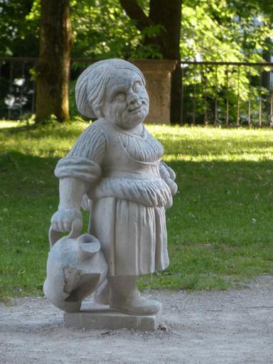 Keywords: dwarf gnome fig sculpture globe zwergelgarten mirabell gardens baroque salzburg stone statue stone stone figure market woman