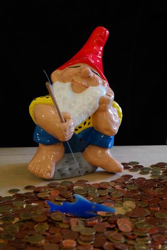 Keywords: dwarf money fish money shark coins cent specie euro garden gnome fig funny making a face cap red dime pieces metal metal money valuable currency finance loose change shiny value pay € coin copper brass nordic gold brass alloy
