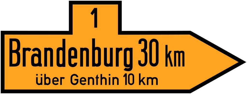 | View Original: | E 1 - Wegweiser für Fernverkehrsstraßen, StVO 1934.svg (681x260) | |||