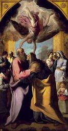 Keywords: E Cajés Encuentro ante la Puerta Dorada Óleo sobre lienzo. 272 x 143 cm. Museo de la Real Academia de Bellas Artes de San Fernando.jpg La obra representa a San Joaquín y a Santa Ana los padres de la Virgen María abrazándose ante la Puerta Dorada 1605 oil on canvas Size cm 143 272 Institution Real Academia de Bellas Artes de San Fernando http //ceres mcu es/pages/Main accession number 0006 http //ceres mcu es/pages/Main PD-old-100 Paintings of Meeting at the Golden Gate Eugenio Cajes 17th-century paintings in the Royal Academy of Fine Arts of San Fernando 1605 paintings in Spain