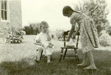 Keywords: mennonite community children mennonitecommunitychildren new holland newholland pennsylvania earline zimmerman earlinezimmerman erma zimmerman ermazimmerman dolls chairs monochrome Caption: July 21, 1949. New Holland, Pennsylvania. Earline Zimmerman, 9. Erma Zimmerman, 2, sitting on chairs which are copies of old fashioned chairs. Citation: Mennonite Community Photograph Collection, 1947-1953. Children Groups. HM4-134 Box 2 Photo 260-2. Mennonite Church USA Archives - Goshen. Goshen, Indiana. Caption: July 21, 1949. New Holland, Pennsylvania. Earline Zimmerman, 9. Erma Zimmerman, 2, sitting on chairs which are copies of old fashioned chairs. Citation: Mennonite Community Photograph Collection, 1947-1953. Children Groups. HM4-134 Box 2 Photo 260-2. Mennonite Church USA Archives - Goshen. Goshen, Indiana. |