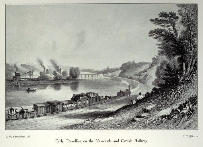 Keywords: Early travelling on the Newcastle and Carlisle railway.jpg Early travelling on the Newcastle and Carlisle Railway cite book The North Eastern Railway; its rise and development 1915 Tomlinson William Weaver 1858-1916 http //archive org/details/northeasternrail00tomlrich Plate XVIII opposite p 368 1915 H Griffiths lith Henry Griffiths Engraver died 1849 http //www drallum co uk/hgriffiths-after-whbartlett-1809---1854-hand-coloured-engraving-stonehaven-1840-148-p asp <br/> from drawing by Creator John Carmichael 1868 Images taken from books by William Weaver Tomlinson Newcastle and Carlisle Railway John Carmichael |