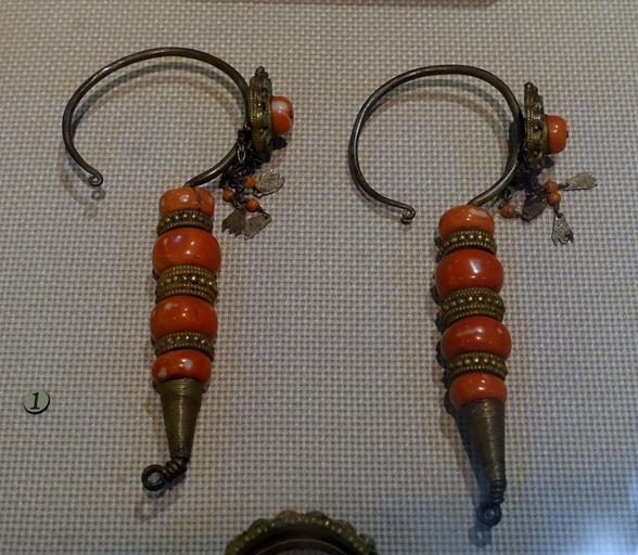 | View Original: | Earrings, Tibet, 1644-1911 AD, gilt silver, coral - Sichuan Provincial Museum - Chengdu, China - DSC04707.jpg (3091x2693) | |||