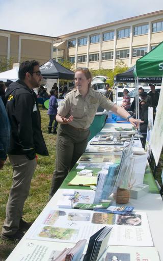 | Keywords: presidio pom public_affairs publicaffairs environmental sustainability outdoors education community partnerships environment sustainable waste recycle recycling information event earth earth_day earthday conserve conservation water hazardous_waste hazardouswaste trash stormwater sewer drain pollution planet green monterey pmsa public_works publicworks dpw imcom installation_management installationmanagement ca usa outdoor MONTEREY, California -- Jane Rudebusk, Visitor Services and Education specialist for the California Department of Fish and Wildlife, discusses Elkorne Slough conservation efforts during the Presidio of Monterey celebrated Earth Day at an outdoor education expo April 28, 2016. Installation agencies, community partners and private organizations presented information about conservation opportunities and sustainability issues on post and in the Monterey Bay area. U.S. Army photo by Catherine Caruso, Presidio of Monterey Public Affairs Office. VISION ID: 160428-A-QZ159-025 MONTEREY, California -- Jane Rudebusk, Visitor Services and Education specialist for the California Department of Fish and Wildlife, discusses Elkorne Slough conservation efforts during the Presidio of Monterey celebrated Earth Day at an outdoor education expo April 28, 2016. Installation agencies, community partners and private organizations presented information about conservation opportunities and sustainability issues on post and in the Monterey Bay area. U.S. Army photo by Catherine Caruso, Presidio of Monterey Public Affairs Office. VISION ID: 160428-A-QZ159-025 |