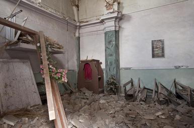 Keywords: earthquake rubble l'aquila collapse disaster house roads onna glimpse alley historical centre church