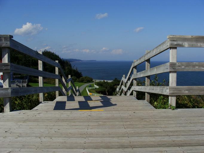 Keywords: east coast lighthouse stairway ocean strong light shadow patterns stairs staircase pathway wooden path boardwalk
