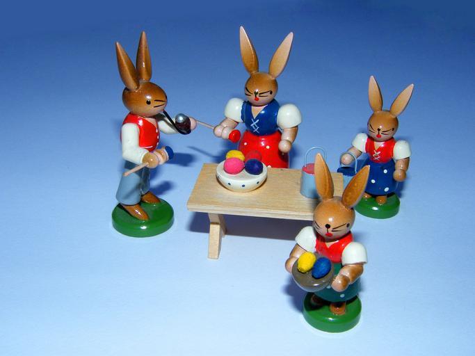 Keywords: easter easter bunny team teamwork paint group colorful wood painted figures color family hard working