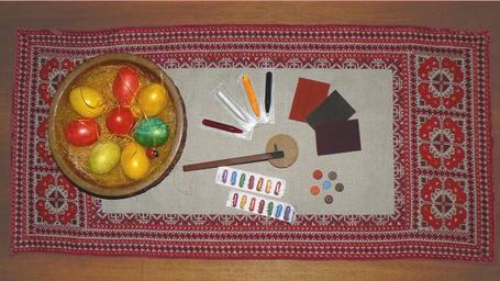Keywords: Easter-eggs-dyes.jpg Разнооб азие от бои за Великденски яйца боядисани листчета таблетки и капсули за азтва яне в го еща боя писалки с жели ана боя и восъчна писалка в центъ а Various dyes for the Easter eggs dyed sheets of paper dye pills and jelly capsules to dissolve in hot water jelly dye pencils and a wax pencil in the center Own 2008-04-26 Vassia Atanassova - Spiritia Easter eggs in Bulgaria Dyes |