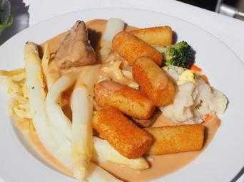 Keywords: eat court lunch main course asparagus croquettes hearty delicious filet lace fillet meat
