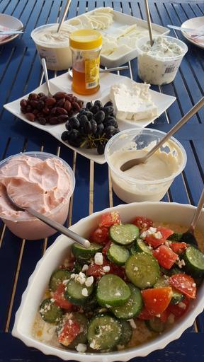 Keywords: eat vegetables tomatoes healthy food cucumbers mediterranean olives