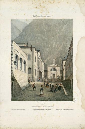 | Keywords: Eaux-Bonnes (Basses-Pyrénées) - L'établissement Thermal et la Chapelle - Fonds Ancely - B315556101 A MERCEREAU 7 018.jpg Impression en 3 coul par Frick frères à Paris Fait partie d'un ensemble de recueils de lithographies de Mercereau composés de lithographies provenant de La France de nos jours vaste suite publiée par livraisons de 1853 à 1876 et comprenant 475 planches en deux tirages l'un à deux teintes noir et bistre l'autre en couleurs Les libraires ont réuni ces planches en albums de composition variable quant au nombre de planches et aux dessinateurs Asselineau Mercereau Maurice Deroy etc Un titre Les Pyrénées par Ch Mercereau; Bagnères-de-Luchon par Ch Mercereau était frappé sur le plat supérieur de la reliure de l'album ainsi que le nom du Libraire pour lequel il était réalisé La plupart des recueils de ces planches pyrénéennes portent le nom de Sajous libraire à Bagnères-de-Luchon Pl 1 à 18 numérotées de 370 à 386 Pl 374 pl 5 et 6 en double -- Pl 19 20 et 21 numérotées respectivement 407 415 et 418 Ces trois pl ont été dessinées et lithographiées par Asselineau -- Pl 22 23 et 24 numérotées 438 439 et 440 -- Pl 22 lith par Aubrun -- Pl 25 numérotée 441 -- Pl 26 à 40 numérotées de 327 à 341 -- Pl 41 à 46 numérotées de 363 à 368 -- Pl 47 numérotée 369 -- Pl 48 num 292 -- Pl 49 et 50 num 264 et 265 -- Pl 51 et 52 num 268 et 269 -- Pl 53 à 55 num de 293 à 295 -- Pl 56 num 300 -- Pl 57 à 59 num de 307 à 309 -- Pl 60 à 70 num de 316 à 326 -- Pl 71 num 63 dessin et lith d'Asselineau imprimerie Destouches -- Pl 72 et 73 num 87 et 88 dessin et lith d'Asselineau imprimerie Destouches -- Pl 74 num 124 signée Lebreton éditée chez Lalonde à Paris et imprimée chez Becquet frères à Paris -- Pl 75 num 161 dessin et litho d'Asselineau imprimerie Destouches --Pl 76 à 78 num de 207 à 209 -- Pl 79 à 81 num de 211 à 213 -- Pl 82 num 220 dessin et lith de Maurice imprimerie Destouches -- Pl 83 à 86 num de 226 à 229 -- Pl 87 et 88 num 234 et 235 -- Pl 89 à 91 num de 273 à 275 -- Pl 92 et 93 num 290 et 291 Pièces jointes 6 pl sépia dont certaines sont des doubles du recueil de Mercereau Les cinq premières planches sont numérotées respectivement 318 321 324 331 386 La dernière planche n'est pas extraite de La France de nos jours mais de L'Espagne pittoresque et monumentale Ces six planches sont signées Mercereau éditées chez Sinnet et imprimées chez Frick frères Ancely René 1876 - 1966 Possesseur fre public domain domaine public B315556101_A_MERCEREAU_7_018 jpg image/jpeg 1 f de pl lithogr ; 31 cm oblong Frick frères Imprimeur Sinnet F Éditeur http //numerique bibliotheque toulouse fr/collect/general/index/assoc//ark /74899/B315556101_A_MERCEREAU_7_018 dir/B315556101_A_MERCEREAU_7_018 jpg Bibliothèque municipale de Toulouse A-MERCEREAU 7-18 Creator Charles Mercereau http //catalogues toulouse fr/web2/tramp2 exe/do_keyword_search/log_in setting_key BMT1 servers 1home query p001642 St Jean-de-Luz intérieur de l'Eglise St Jean-de-Luz le Château de l'Infante Biarritz Vue générale prise du Phare Château de Mauvesin près Bagnères-de-Bigorre Hautes Pyrénées Bagnères de Bigorre Hautes Pyrénées - Intérieur de l'Eglise des Carmes en couleurs Bagnères de Bigorre Hautes Pyrénées - Intérieur de l'Eglise des Carmes Bagnères-de-Bigorre - Eglise et couvent des Carmes Bagnères-de-Bigorre Hautes-Pyrénées - Tour des Jacobins Cascade et Pont de Magenta Vallée de l'Esponne Hautes Pyrénées Cascade de Trémes-Aïgues Vallée de Grip Hautes Pyrénées St Sauveur Hautes Pyrénées - Le Pont Napoléon Bayonne - Eglise St André Arreau et la Vallée d'Aure Hautes Pyrénées - Vue prise au dessus de la route du Col d'Aspin Auch - Vue prise sur les bords du Gers Auch - Vue de la Cathédrale Auch - Intérieur de la Cathédrale Bagnères-de-Bigorre - Vue Générale prise de la Fontaine ferrugineuse Nantes - Vue de l'Eglise Ste Croix Le Croisic - Plage des Baigneurs et Etablissement de Bains Le Folgoët - Vue de l'Eglise Brèche de Roland prise de Gèdres Hautes Pyrénées Chapelle du couvent de Pouëlahun i e Pouey Lahun - Vallée d'Azun Hautes Pyrénées Eglise des Templiers à Luz Le Pont de Scia - Route de Luz à Gavarnie Hautes-Pyrénées Vue de l'établissement de la Raillière près Cauterets Hautes-Pyrénées Vue générale de Cauterets prise du Mamelon Vert Hautes-Pyrénées Vue du Fort de Lourdes Hautes-Pyrénées Vue d'Argelès-de-Bigorre Hautes-Pyrénées Vue de St Sauveur Hautes-Pyrénées Le Pas de l'Echelle Route de Gavarnie Hautes-Pyrénées Fond de la Vallée d'Argelès prise de la terrasse de St Savin Hautes-Pyrénées Place Grammont à Pau Basses-Pyrénées Vue générale des Eaux-Bonnes Basses-Pyrénées Barèges et la Vallée du Bastan Hautes-Pyrénées Chute supérieure du Pont d'Espagne Hautes-Pyrénées La grotte miraculeuse à Lourdes Hautes-Pyrénées Eglise de Bétharram et Pont de Lestelle Basses Pyrénées Cascade du Cerizet Près Cauterets Hautes-Pyrénées Pic du Midi d'Ossau 2885m Basses Pyrénées - Vue prise du 3e plateau de Bious-Artigues Pau - Vue prise de la terrasse du Château Toulouse - Cloître du Musée Galerie du Moyen-Age Pau - Vue du Château prise du Parc Toulouse - Cloître du Musée et Clocher des Augustins Toulouse - La maison de pierre fragment de la façade Toulouse - Intérieur de St Sernin St Jean-de-Luz Fort du Socoa Toulouse - Vue du Capitole Bordeaux Vue de la Porte du Caillau i e Cailhau Bordeaux Porte de la grosse Cloche Bordeaux Vue des Quinconces Bordeaux - Vue de la Tour et de l'Eglise de St Michel Toulouse - Vue du Pont de pierre prise du Quai de Brienne Toulouse - Abside de l'Eglise de St Sernin de l'an 1097 Toulouse - Choeur de la Cathédrale St Etienne Rouen - Hôtel de Bourgtheroulde Biarritz - Vue des Bains Napoléon et du Casino Biarritz - Vue des Bains du Port Vieux Biarritz - Vue de l'Entrée de la Ville à l'arrivée de Bayonne Le Lac Bleu Hautes-P