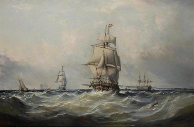 Keywords: Ebenezer Colls - Stormy waters.jpg oil canvas cm 61 5 92 object history credit line signed and dated 'E Colls 1866' lower left accession number http //www bonhams com/eur/auction/19777/lot/139/ Bonhams PD-old-auto-1923 1887 Ebenezer Colls 19th-century sailing ships in paintings 1866 paintings Images from Bonhams