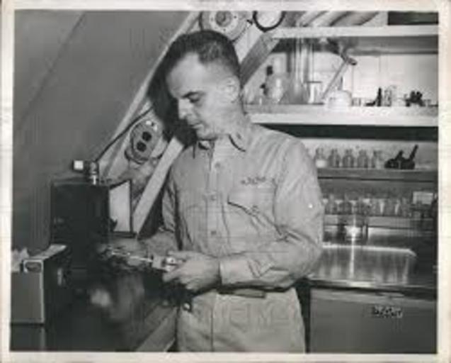 | Keywords: Ebersole-Seawolf.jpg en Lieutenant Commander John Henry Ebersole M D Medical Corps US Navy using methods to analyze radioactive isotopes determines source of radiation in the nucleonics laboratory aboard USS Seawolf SSN-575 Ebersole stationed aboard USS Seawolf SSN-575 was responsible for the radiation hygiene and safety of its officers and crew After receiving special training in radiation medicine at Duke University and Oak Ridge Tennessee Dr Ebersole was assigned to the U S Atomic Energy Commission's National Reactor Testing Station at Arco Idaho where he conceived and formulated the Navy's first radiation hygiene program for a nuclear powered vessel Ebersole was the first officer to serve aboard 2 nuclear submarines 1957-09-27 U S Navy BUMED Library and Archives U S Navy photographer other versions PD-USGov USS Seawolf SSN-575 Nuclear submarines of the United States United States Navy |