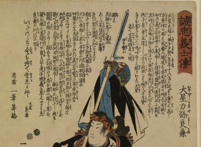| Keywords: Ebiya Rinnosuke - Seichu gishi den - Walters 956 - Detail A.jpg  Walters Art Museum artwork Creator Ebiya Rinnosuke between 1847 1848 late Edo pigments mulberry paper cm 36 2 25 5 accession number 95 6 36717 Mr and Mrs C R Snell Jr date and mode of acquisition unknown Walters Art Museum Gift of Mr and Mrs C R Snell Jr 1986 Signature Ichiyusai Kuniyoshi ga The Nature of Loyalty Japanese Warrior Prints of the Nineteenth Century The Walters Art Gallery Baltimore 1989 place of origin Japan Walters Art Museum license 2D Japanese prints in the Walters Art Museum Historic samurai prints Ebiya Rinnosuke Media contributed by the Walters Art Museum needs category review |