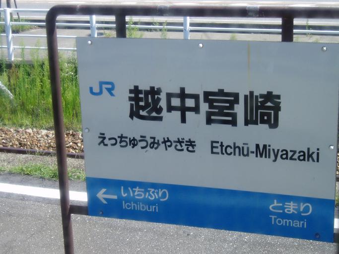 Keywords: Ecchu-Miyazaki Station 001.jpg en Ecchu-Miyazaki Station ja 越中宮崎駅の駅 own 人撮影 ネプチューン 2008-08-31 Etchū-Miyazaki Station Train station signs of West Japan Railway Company August 2008 in Japan