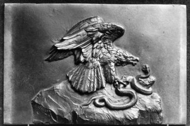 | Keywords: Eck et Durand - Eagle and Snake - Walters 27189.jpg Walters Art Museum artwork Sculptor Creator Antoine-Louis Barye Founder This plaque was intended to be mounted on a piece of furniture or set in the base of a clock The reliefs of the ferocious eagles attacking their prey are in their intense drama closely associated with early 19th-century Romanticism This particular example was cast by the foundry Eck et Durand for the firm of silversmiths Fannière Frères modeled ca 1824-1826 bronze with dark brown patina cm 10 6 15 7 1 7 accession number 27 189 34740 William T Walters Baltimore prior to November 1889 He may have purchased this relief from Fannière Frères who lent a cast of this subject no 387 to the Paris Exposition Barye Henry Walters city Baltimore Walters Art Museum Henry Walters Acquired by William T Walters before 1889 Signature Stamped before casting in the model beneath the rocks on left side BARYE; Mark Incised FF for Fannière Frères Exposition Barye École des beaux-arts Paris Paris; École des beaux-arts Paris Paris 1875-1889 The Works of Antoine-Louis Barye American Art Gallery New York New York 1889-1890 Untamed The Art of Antoine-Louis Barye The Walters Art Museum Baltimore; Philbrook Museum of Art Tulsa; The Henry Morrison Flagler Museum Palm Beach 2007-2008 place of origin Paris France Walters Art Museum license Fonderie Eck et Durand Media contributed by the Walters Art Museum needs category review Collections of the Walters Art Museum Sculptures by Antoine-Louis Barye Eagles and snakes in art |