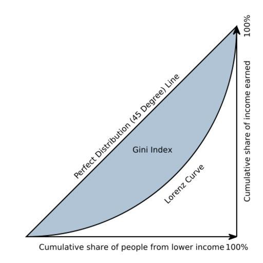 | Keywords: Economics Gini coefficient svg.png  version by Bluemoose You can think of the horizontal axis as percent of people and the vertical axis as the percent of income those people receive Therefore the curves always start and end at the same places where 0 of people make 0 of the country's income and 100 of people making 100 of the total income The disparity comes in at the left hand side of the curve where the percent of people is higher than the percent of income they receive i e 10 of the people getting 5 of the total income And at the right hand side when the percent of income received rises more than the percent of people receiving it page is/was here Original uploader was BenFrantzDale at http //en wikipedia org en wikipedia Bluemoose Lorenz curves depicting Gini coefficient Economics Gini coefficient 2.png  version by Bluemoose You can think of the horizontal axis as percent of people and the vertical axis as the percent of income those people receive Therefore the curves always start and end at the same places where 0 of people make 0 of the country's income and 100 of people making 100 of the total income The disparity comes in at the left hand side of the curve where the percent of people is higher than the percent of income they receive i e 10 of the people getting 5 of the total income And at the right hand side when the percent of income received rises more than the percent of people receiving it page is/was here Original uploader was BenFrantzDale at http //en wikipedia org en wikipedia Bluemoose Lorenz curves depicting Gini coefficient |