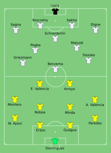 | Keywords: ECU-FRA 2014-06-25.svg 2014 FIFA World Cup Group E match between Ecuador and France Groupe F de la Coupe du Monde de football 2014 entre l'Ecuateur et la France 2014-06-25 23 04 53 own <br />Line-ups http //resources fifa com/mm/document/tournament/competition/02/38/56/29/eng_42_0625_ecu-fra_tacticalstartlist pdf Davykamanzi cc-zero Uploaded with UploadWizard FIFA World Cup 2014 line-ups France at the 2014 FIFA World Cup Ecuador at the 2014 FIFA World Cup France national football team line-ups Ecuador national football team line-ups |