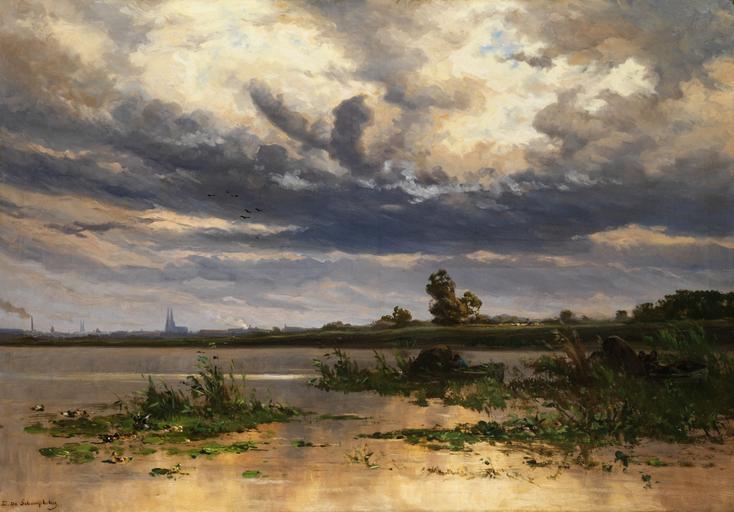Keywords: edmond de schampheleer art artistic painting oil on canvas artistry landscape nature outside trees country countryside sky clouds beautiful plants river water reflections scenic