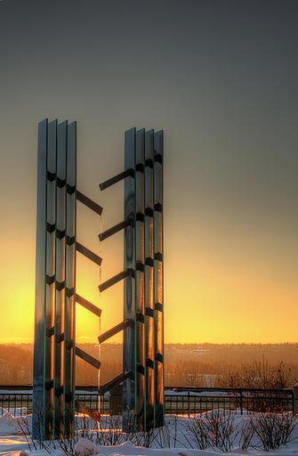 Keywords: edmonton canada convergence fountain frozen water winter ice sky clouds sunset sculpture structure nature outside beautiful