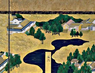 Keywords: Edo l311.jpg TOP OF THIRD PANEL Left Screen Tameike Pond Hie Sanno Shrine and shops in front of it Ii Kamon no kami residence View of Edo Edo zu pair of six-panel folding screens 17th century http //www rekihaku ac jp/e_gallery/edozu/l31 html century 17 Author PD-art View of Edo folding left screen 17th century |