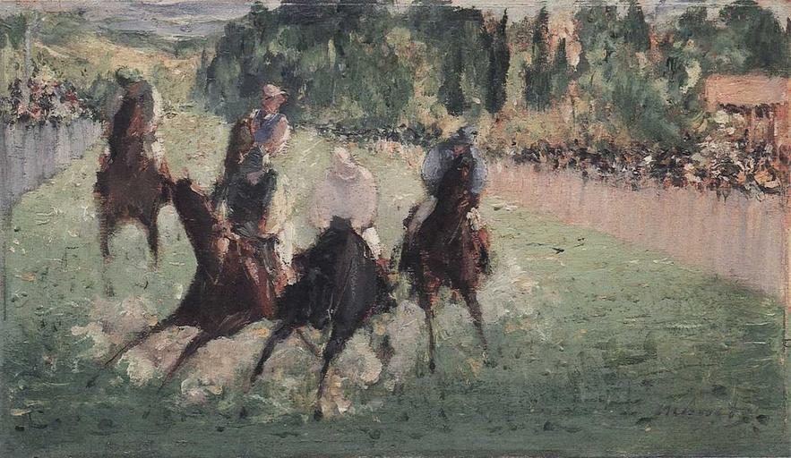 Keywords: Édouard Manet - At the Races.jpg Artwork fr Courses à Longchamp en At the Races en Oil on canvas en 12 6 x 21 9 cm en Washington D C en National Gallery of Art RW 97 Catalogue Washington 1982 ~ 1865 creator Édouard Manet PD-old-100 Paintings of animals by Édouard Manet Paintings by Édouard Manet in the National Gallery of Art Washington |