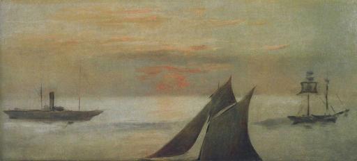 | Keywords: Édouard Manet - 'Bateaux en mer, soleil couchant.jpg  Artwork creator Édouard Manet 1868 oil canvas 42 x 94 cm Musée Malraux Le Havre accession number object history credit line Artbook Paintings of seascapes by Édouard Manet Paintings in the musée des Beaux-Arts André Malraux PD-old-100  |