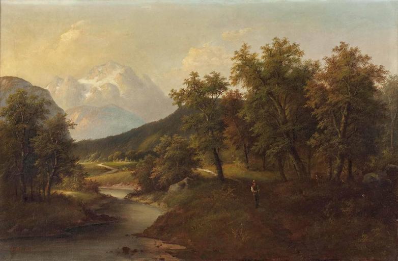 | Keywords: Eduard Boehm - Mittelgebirgslandschaft mit Wanderer.jpg 1900 oil canvas cm 68 106 accession number object history credit line exhibition history E Boehm ~ lower left signature http //www arcadja com/auctions/fr/private/bohm_eduard/oeuvres/3035/0/ Dorotheum Salzburg 19 Nov 2013 lot 184 via ARCADJA auction results PD-old-100 DEFAULTSORT Boehm Eduard; Landscape; Dorotheum 2013 Eduard Boehm Images from Dorotheum | ||||