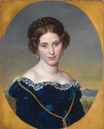 | Keywords: Eduard Friedrich Leybold - Bildnis einer Dame vor Landschaftshintergrund (1822).jpg  Eduard Friedrich Leybold de 1798-1879 Porträt einer jungen Frau / Bildnis einer Dame vor Landschaftshintergrund 1822 Oil on canvas cm 72 58 5 object history credit line Leybold pinx 1822 ~ center right signature and date accession number 1 http //www nagyhazi hu/english/kereses_gyors php Nagyházi Galéria és Aukcióház Budapest<br/>2 http //www dorotheum com/auktionen/auktion-10353-olgemalde-und-aquarelle-des-19-jahrhunderts html no_cache 1 source resultList offset 1 Palais Dorotheum 2013 12 11 Lot Nr 258 PD-old-100 Eduard Friedrich Leybold 19th-century portrait paintings location missing 1822 19th-century portrait paintings of unidentified women 1822 1822 oil on canvas paintings Portrait 1822 portrait paintings from Germany 19th-century oil oval portraits of women at bust length 1822 Blue clothing in art male 1822 Females with pearl earrings in art 1822 Images from Dorotheum |