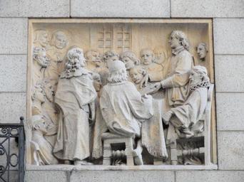 View Original:Education (Founding of Harvard College) by Domingo Mora - bas-reliefs, Congregational House, Boston, MA - DSC04686.JPG (4320x3240)