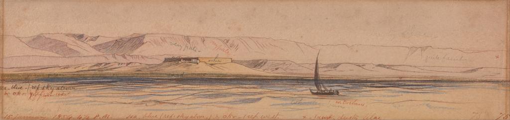 | Keywords: Edward Lear - Boat on the Nile - Google Art Project (2403275).jpg inscribed in brown red ink lower left 15 January 1854 4 1/2 P M Sea blue red sky above okr - ref West x faint dusty lilac ; in brown-red ink lower right 75 ; Verso inscribed in balck ink upper center 16 uppermost ; in graphite lower center 68 Not on View Watercolor with pen in brown ink over graphite on moderately thick rough beige wove paper sky water river riverbank structure single built work sail landscape marine art boat special url_id _gGCDRhYFYJK8w PD-old-100-1923 1888 Egypt by Edward Lear Nile in art Google Art Project works by Edward Lear 1854 in Egypt Egyptian feluccas in art |