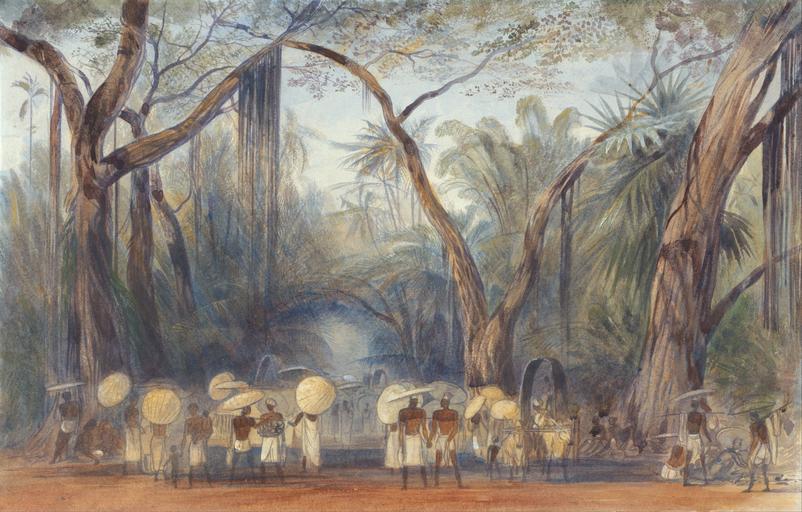 Keywords: Edward Lear - Coolies on the Road near Kalicut, Malabar - Google Art Project.jpg Not on View Watercolor with body color and gum arabic on wove paper on medium moderately textured cream wove paper vegetation trees figures representations landscape jungle special url_id YQHdRDsLa3dFYw PD-old-100-1923 1888 Google Art Project works in Yale Center for British Art Google Art Project works by Edward Lear Coolies in India 1820s paintings from India Landscape paintings of India Kerala in the 1820s Servants in art of India |