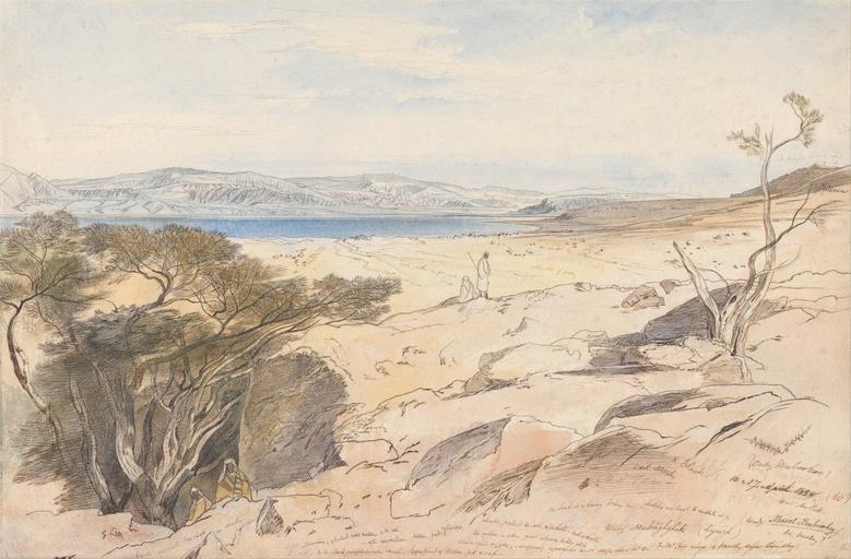 | Keywords: Edward Lear - The Dead Sea, 16 and 17 April 1858 - Google Art Project.jpg Google Art Project watercolor London 1812 San Remo 1888 Edward male 2324653 Lear British 1812 - 1888 /collection/yale-center-for-british-art/artwork/the-dead-sea-16-and-17-april-1858-edward-lear/2243113/ Edward Lear Artist /artist/edward-lear/4129607/ 4129607 /collection/yale-center-for-british-art/ Yale Center for British Art 2305845 http //britishart yale edu/ 2/24/2012 12 02 38 AM /collection/yale-center-for-british-art/artwork/the-dead-sea-16-and-17-april-1858-edward-lear/2243113/ 1858 April 16 and 17 1858 birds sky bushes sand rocks water figures river mountains vegetation trees study visual work sketch landscape Pen and brown ink with watercolor over graphite on heavy textured wove paper 368 2243113 False 1858 3/24/2012 11 04 00 AM YCBA/lido-TMS-6290 http //collections britishart yale edu/vufind/Record/1670622 Yale Center for British Art Paul Mellon Collection painting 1850 1860 San Remo Creation w552 x h368 cm April 16 and 17 1858 False 1 51928783382789 Item the-dead-sea-16-and-17-april-1858-edward-lear The Dead Sea 16 and 17 April 1858 d 552 Inscribed with other notations in artist's hand of general and color notes in graphite traced over in pen and brown ink Inscription _Signed_and_Dated Dated lower right 16 17 April 1858 60 Not on View Pen and brown ink with watercolor over graphite on heavy textured wove paper birds sky bushes sand rocks water figures river mountains vegetation trees study visual work sketch landscape special url_id NgF4BVzrDModzQ PD-old-100-1923 1888 Watercolor paintings by Edward Lear Google Art Project works by Edward Lear |