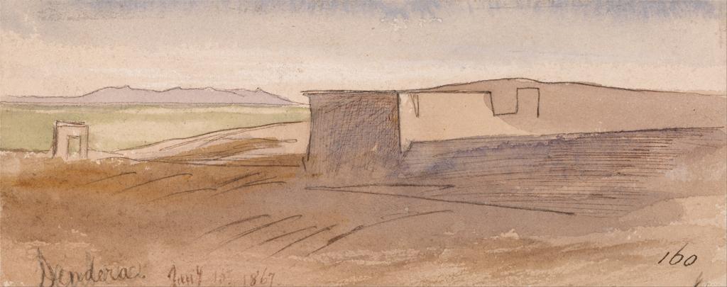 MAKE A MEME View Large Image Edward Lear - Dendera - Google Art Project.jpg inscribed in brown ink lower left Dendera Jany 15 1867 ; in brown ink lower right 160 ; Verso in graphite center 37 up middle - left Not on View Watercolor with pen in brown ink over graphite ...