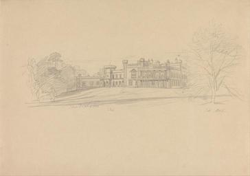 | Keywords: Edward Lear - Knowsley Hall - Google Art Project.jpg Inscribed in graphite center right 28 Oct other inscriptions on drawing that are illegible; Verso in graphite center 20 Not on View Graphite on thick moderately textured beige wove paper architectural subject estate chimneys architectural elements windows towers building divisions mansion trees landscape special url_id ywH7tv2HpRcpIQ PD-old-100-1923 1888 Drawings by Edward Lear Google Art Project works by Edward Lear | ||||