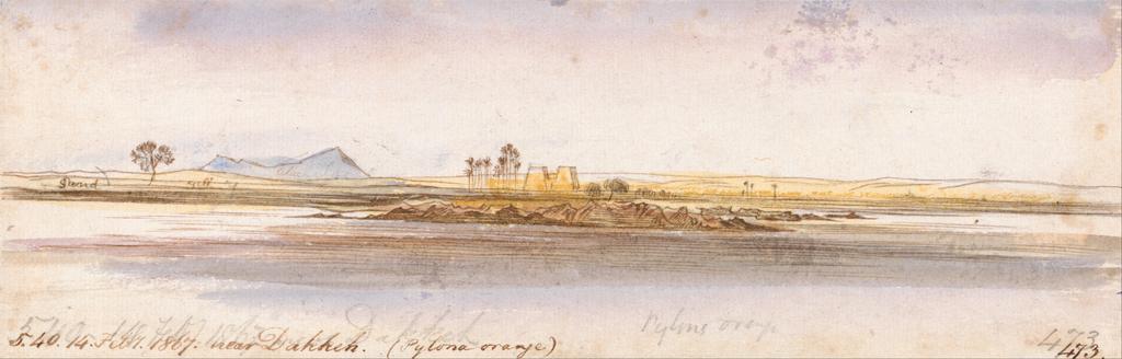 MAKE A MEME View Large Image Edward Lear - Near Dakkeh - Google Art Project.jpg inscribed in brown ink lower left 5 40 14 Feby 1867 near Dakkeh Pylona orange ; in brown ink lower right 473 ; Verso in graphite upper left 259 Not on View Watercolor with pen in brown ink ...