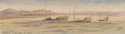 | Keywords: Edward Lear - Rizaghat - Google Art Project.jpg inscribed in brown ink lower left Rizaghat 5 15 Jany 23 1867 ; in brown ink lower right 218 ; Verso in graphite upper left 55 Longwise Top Not on View Watercolor with pen in brown ink over graphite on thick moderately textured gray wove paper sky water river mountains figures representations landscape marine art boats special url_id 2wGN0KwDgosqjQ PD-old-100-1923 1888 Watercolor paintings by Edward Lear Google Art Project works by Edward Lear Historical images of Sudan |