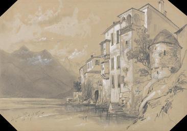 Keywords: Edward Lear - St. Giulio, Orta, 26 September 1837 - Google Art Project.jpg Inscribed in graphite lower left St Guilio Orta 26 Sept 1837 ; Verso in graphite center 21 Longuse 26 Not on View Graphite with stumping and white gouache on moderately thick moderately textured gray-green wove paper architectural subject clouds sky rocks water balcony chimney windows steps mountains trees buildings landscape special url_id XgEVFNLGdt5ofA PD-old-100-1923 1888 Drawings by Edward Lear Google Art Project works by Edward Lear |