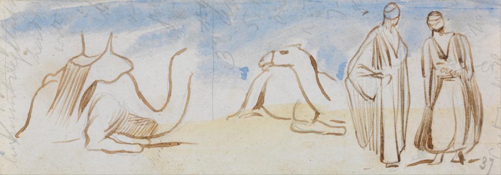 | Keywords: Edward Lear - Studies of Camels and Egyptian Men - Google Art Project.jpg Verso inscribed in brown ink center 176 up middle line- left Not on View Watercolor with pen in brown ink over graphite on medium slightly textured cream wove paper camels mammals Egyptian men robes studies visual works genre subject special url_id DgFbOMFMh3_G8A PD-old-100-1923 1888 Egypt by Edward Lear Google Art Project works by Edward Lear 1867 in Egypt Camels in art | ||||
