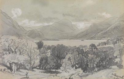 Keywords: Edward Lear - Ullswater, 14 Oct. 1836 - Google Art Project.jpg Inscribed in graphite lower right Ullswater 14 Oct ; Verso in graphite center 10 Not on View Graphite with stumping and white gouache on moderately thick moderately textured gray-green wove paper sky lake mountains hills trees figure representation landscape special url_id EAGCLaNxZBE8Ng PD-old-100-1923 1888 Drawings by Edward Lear Google Art Project works by Edward Lear |