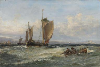 | Keywords: Edwin Hayes - Trawlers Leaving Port.jpg Edwin Hayes Edwin Hayes 1820-1904 Oil on canvas cm 37 55 Institution National Gallery of Ireland accession number NGI 1055 object history credit line Bequeathed 1940 exhibition history ~ lower left signature http //onlinecollection nationalgallery ie/view/objects/asitem/Objects 0040683 National Gallery of Ireland PD-old-auto-1923 1904 Edwin Hayes Paintings in the National Gallery of Ireland Dublin Bay Paintings of sailboats Oil paintings of seascapes |